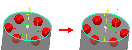 Activar/desactivar la orientación automática — Haga clic en este botón para seleccionar automáticamente la mejor orientación desde la que sondear la figura. Por ejemplo, al sondear un plano, la orientación es la misma que el vector de la normal del plano; al sondear un cono, la orientación es la misma que el eje del cono.Para ver el resultado de la orientación de la sonda, utilice la pestaña de Simular el programa.