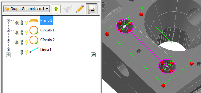 Haga clic en la pestaña de Inicio > panel de Trayectoria de la sonda > flecha de Visibilidad > Visualizar todas las trayectorias de sonda para visualizar las trayectorias de la sonda de todos los elementos de la secuencia de inspección o el rango. Por ejemplo: