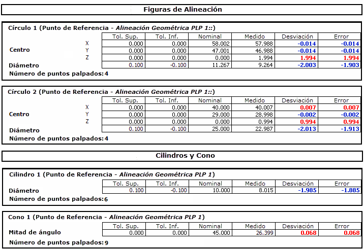 Cuando haya importado resultados de una inspección de OMV, puede ver los detalles de medición en la pestaña de Informe . Por ejemplo: