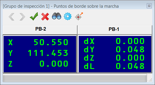 para guardar las mediciones del punto de borde y sondear el siguiente punto de borde.