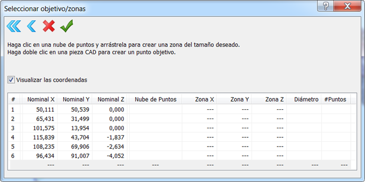 Para acceder a la lista, active la casilla de Visualizar las coordenadas.