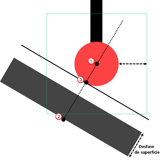 El centro del palpador. Esto actúa como el centro de la búsqueda radial para un contacto. El radio de búsqueda es igual al radio del palpador más el Criterio de proximidad configurado.