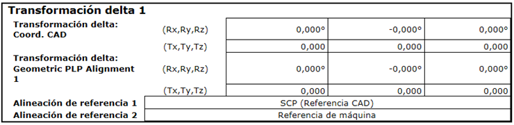 Utilice el elemento de Transformación delta para medir la diferencia en la traslación y rotación de las dos alineaciones o ajustes óptimos seleccionados.