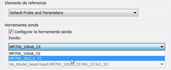 PowerInspect añade automáticamente un elemento de Sonda y parámetros cuando cree un documento. Utilícelo para configurar los atributos iniciales de la sonda y el sondeado de la inspección.