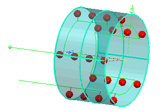 Cuando se crea un elemento usando el Detector de elementos alámbricos, PowerInspect toma el vector de dirección del elemento del modelo CAD. El vector se muestra como una línea sólida amarilla con una flecha en la vista CAD. Por ejemplo: