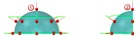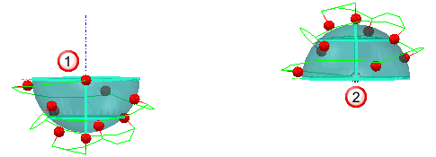 permiten configurar los puntos inicial y final de la trayectoria de la sonda de la esfera respecto del vector de Orientación del elemento. Por ejemplo, estos pares de ángulos de elevación: