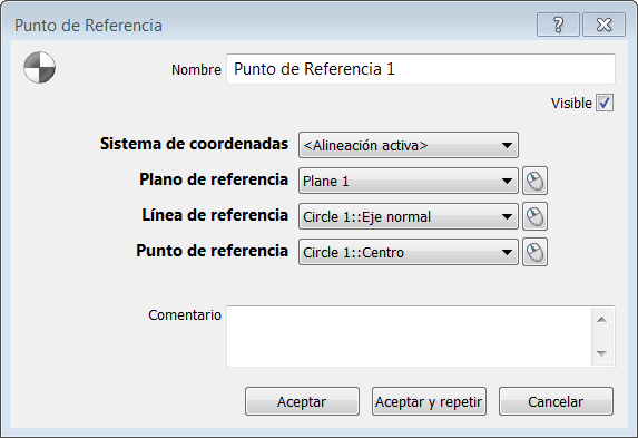 - Para mostrar el punto de referencia en la vista CAD, seleccionar la casilla Visible.