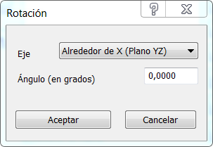 Utilice el cuadro de diálogo de Rotación para rotar el modelo en uno o varios ejes.