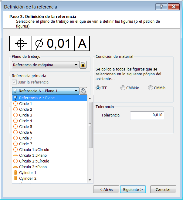 - Se puede seleccionar el símbolo de figura de la referencia para utilizar el mismo símbolo en la referencia GD&T y en el CAD.