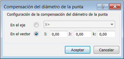 - Según vector e introduzca un vector para aplicar la compensación la dirección seleccionada.