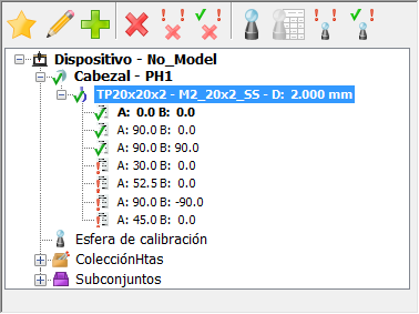 En Vista de la sonda, se muestran los detalles del dispositivo de medición que se utilizará cuando se creen inspecciones para máquinas CNC y MCC manuales.