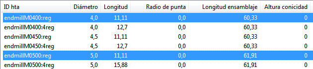 - Introduzca los criterios de búsqueda deseados. Por ejemplo, para incluir todas las fresas planas con un diámetro entre 4 mm y 5 mm: