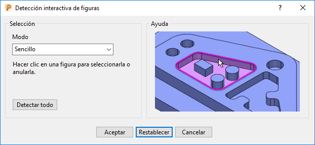 - Para detectar y seleccionar todas las figuras en un modelo, haga clic en Detectar todo.