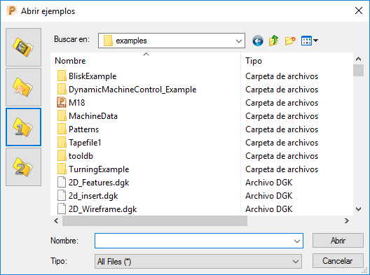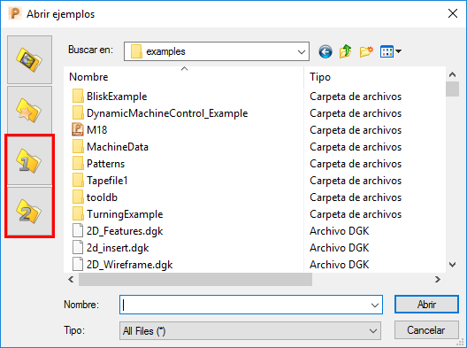 Este ejemplo explica cómo personalizar el botón del directorio definido por el usuario en el cuadro de diálogo de Abrir ejemplos.