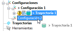 Añada, quite y cambie el orden de las trayectorias en una configuración. Agregue varias trayectorias y excluya trayectorias de configuración para impedir que se ejecuten en un programa CN.
