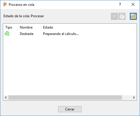 Haga clic en cualquiera estos botones de los Procesos en cola para abrir el cuadro de diálogo de Procesos en cola.