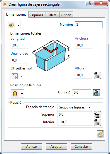 Se abre el cuadro de diálogo de Crear figura, que depende del tipo de figura.