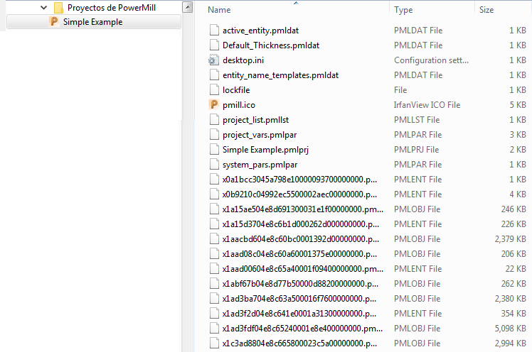 Si abre la carpeta del proyecto en el explorador de Windows, puede ver los ficheros que PowerMill ha creado:
