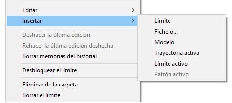 Para abrir el menú, en el explorador, haga clic con el botón derecho en el límite seleccionado y seleccione Insertar.