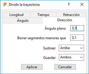 En el cuadro de diálogo de Dividir la trayectoria > Dirección: