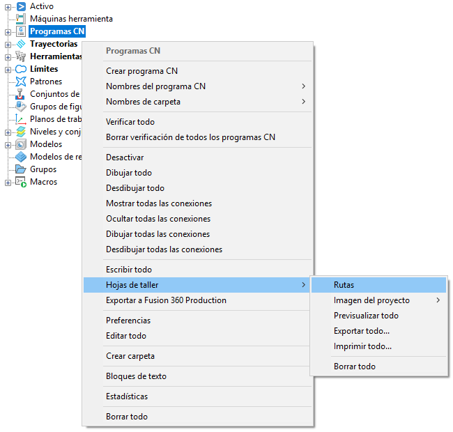 - A partir de un menú contextual de Programas CN individual, seleccione Hojas de taller > Trayectorias.