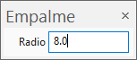 - En la barra de herramientas de Empalme, introduzca un Radio de 8.