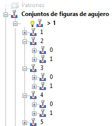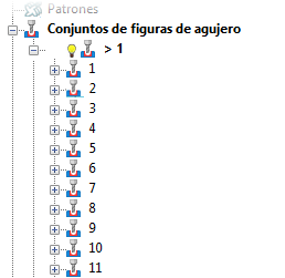 En este ejemplo hay dos agujeros estándares y tres agujeros compuestos. Los agujeros compuestos son de color naranja.