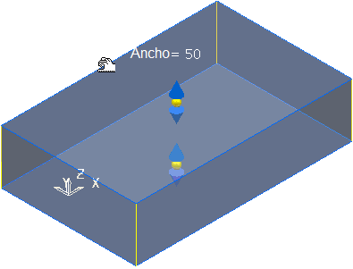 . El texto junto al cursor muestra la anchura del bloque (en este caso 50).