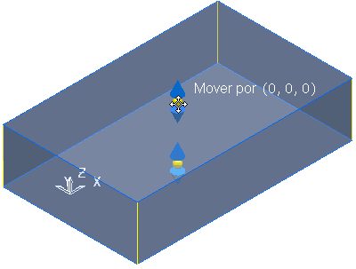 . El texto junto al cursor muestra dónde se agarró el modelo de alambre (en este caso el punto medio) y cuánto se ha movido el bloque (en este caso 0, 0, 0).