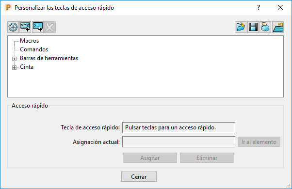 Utilice el cuadro de diálogo de Personalizar las teclas de acceso rápidopara asignar las teclas de acceso rápido a los comandos.