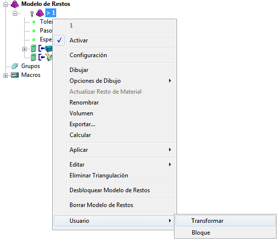 En el menú personalizado de una entidad de PowerMill, desde el menú contextual de cualquier entidad, seleccione Usuario para ver el comando del menú personalizado.