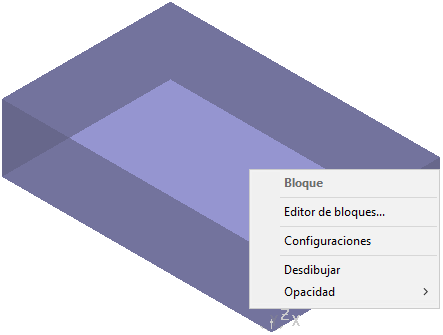 Para acceder al menú contextual del bloque, haga clic con el botón derecho en el área gráfica.
