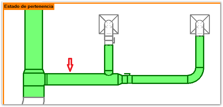 - Al suprimir un elemento en línea como, por ejemplo, una válvula o un regulador de flujo, los conductos y las tuberías no se vuelven a conectar automáticamente. Utilice el comando Recortar/Extender para volver a conectar dos segmentos de conducto o tubería.