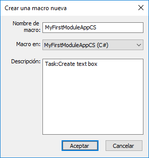 - (Opcional) Añada una breve descripción de la macro en el campo Descripción.