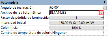 La especificación de un archivo IES para un origen de luz es un procedimiento compuesto de dos pasos: Primero es preciso especificar Red fotométrica para la distribución de luz en la definición de origen de luz. Para ello debe editar la familia de luminarias. Luego debe especificar qué archivo IES utilizar. Puede hacerlo cuando edite la familia de luminarias o al modificar parámetros de tipo para una instalación concreta en un proyecto.