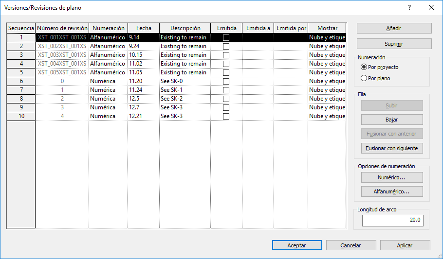 Revit ofrece flexibilidad para representar las secuencias de revisiones de un proyecto. Permite utilizar los siguientes tipos de numeración: