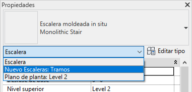 - En el selector de tipo, elija el tipo de escalera que quiere crear. Puede cambiar el tipo más adelante, si es necesario.