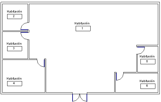 En la vista pueden aparecer los mismos nombres y números de habitación, y las etiquetas de habitación que ocupan la misma ubicación pueden tener nombres y números distintos.