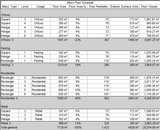 Después de crear suelos de masa, cree una tabla de planificación de suelos de masa para asignar usos o para analizar el diseño.