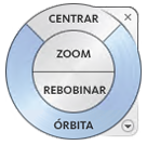 Acceda a herramientas de navegación 2D y 3D mediante SteeringWheels. Las tres ruedas grandes y las tres ruedas pequeñas de SteeringWheels proporcionan acceso a muchos métodos de navegación.