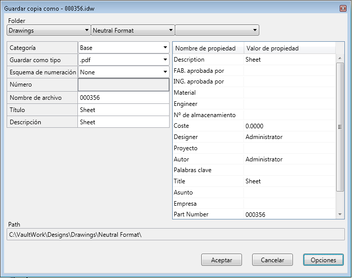 El valor por defecto del cuadro de diálogo varía en función de la versión de Vault.