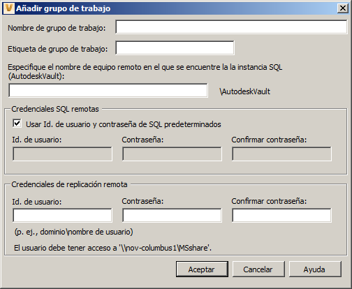 - Escriba la información adecuada para el grupo de trabajo remoto.