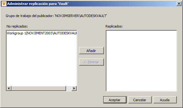- Mueva los grupos de trabajo que desee replicar a la columna Replicados mediante el botón >>.