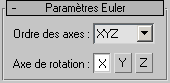 Permet de sélectionner l'ordre de calcul des rotations. L'ordre par défaut est X, Y, Z, l'axe des X étant le premier à subir la rotation.
