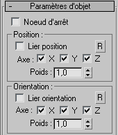 Option Noeud d'arrêt du panneau déroulant Paramètres d'objet