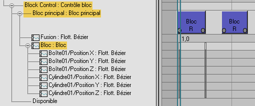 Un contrôleur de bloc est un contrôleur de liste globale qui vous permet de combiner plusieurs pistes à partir d'objets multiples sur une période de temps et de les regrouper sous forme de " blocs ". Ces blocs sont ensuite utilisés pour recréer l'animation à tout moment. Vous pouvez ajouter, supprimer, mettre à l'échelle, déplacer géographiquement et enregistrer des blocs dans la vue piste. Les blocs peuvent représenter une animation absolue ou relative.
