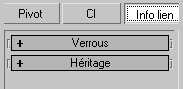 Cette partie du groupe de fonctions Hiérarchie contient deux panneaux déroulants. Le panneau déroulant Verrous dispose de contrôles qui limitent le mouvement des objets dans un axe spécifique. Le panneau déroulant Héritage dispose de contrôles qui limitent les transformations qu'un enfant hérite de son objet parent.