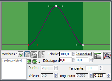 Pour un humain, ce paramètre s'anime généralement entre l'orteil (1,0) pour l'élévation et le talon (0,0) pour la station, comme le montre l'illustration suivante.