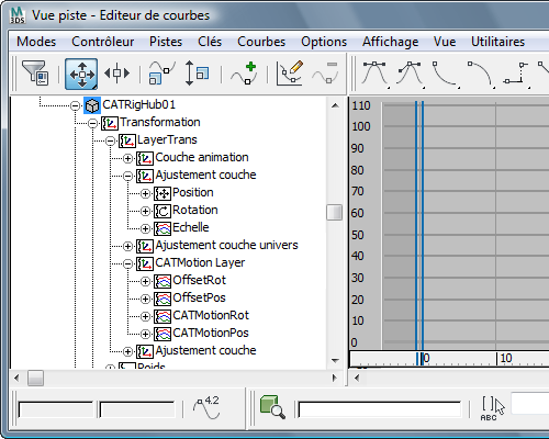 Seules les couches actuellement impliquées dans la pose et l'animation des ossatures CAT sont affichées.