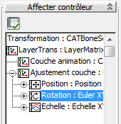 - Dans le panneau déroulant Affecter contrôleur, sélectionnez la piste Rotation de la couche d'animation actuelle.